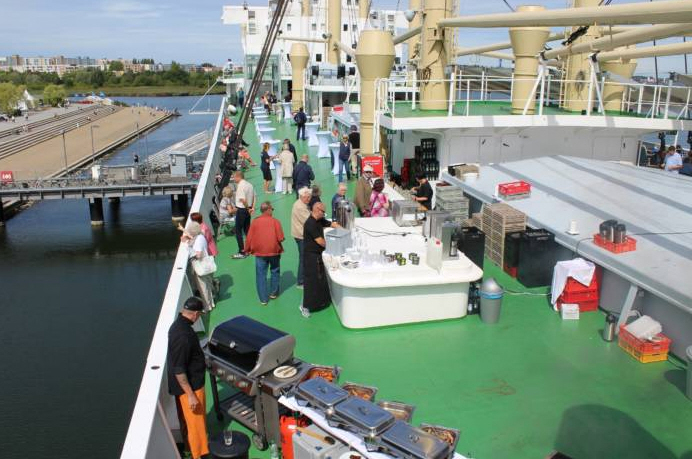 Der Zugang zum Schiff ist durch eine Rampe barrierearm. Darüber hinaus ist das Schiff mit einem geräumigen Fahrstuhl ausgestattet, der den Besuch der Ausstellungs-Decks ermöglicht. So können die Stauung, Deck II und Deck III sowie das Hauptdeck auch mit dem Rollstuhl erkundet werden.